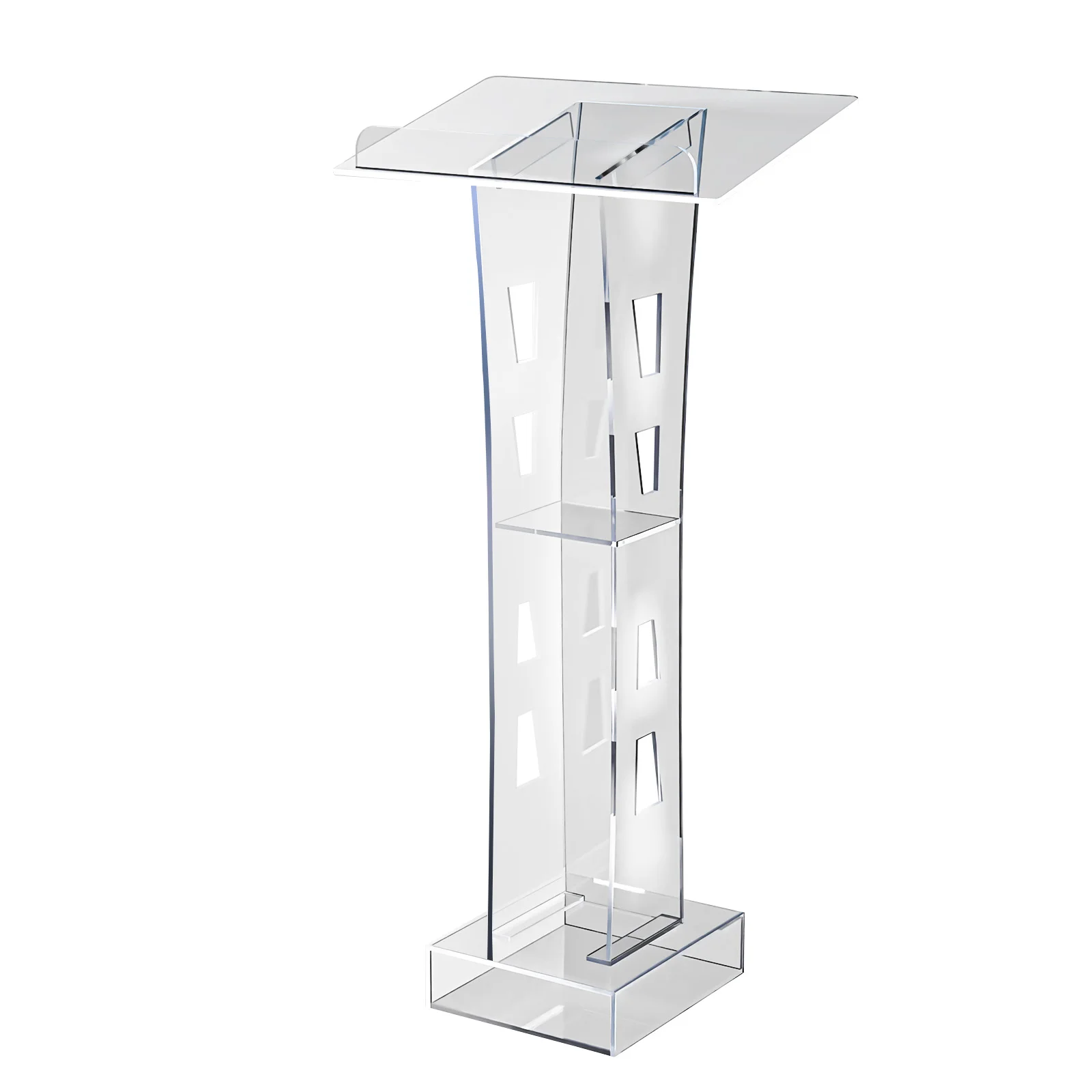 Gebogene Seitenwände: Das geschwungene Design sorgt dafür, dass das gesamte Acrylpodium stabil auf dem Boden bleibt und Ihre Beine weniger anfällt, wenn Sie für eine Präsentation aufstehen.