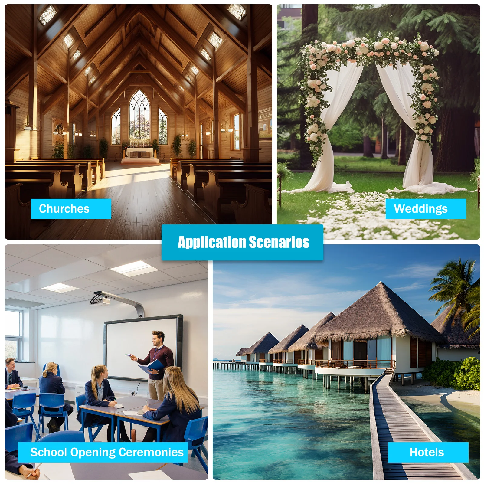 Es ist ideal für Kirchen, Schulen, Hotels, Bühnen, Verkaufszentren, Diskussionen, Presskonferenzen, Schulöffnungszeremonien, Hochzeiten, Abschlussfeiern und andere besondere Anlässe.