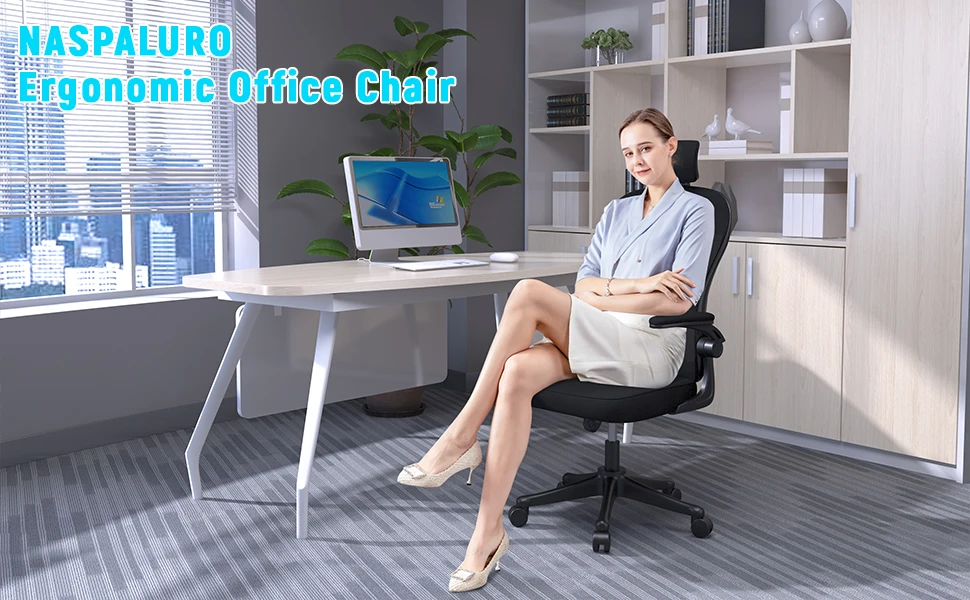 1,Ergonomic Design: Our office chair features an S-shaped backrest, headrest, and lumbar support, providing optimal comfort and support tailored to your body. Nylon wheels ensure smooth, quiet movement on any floor surface.