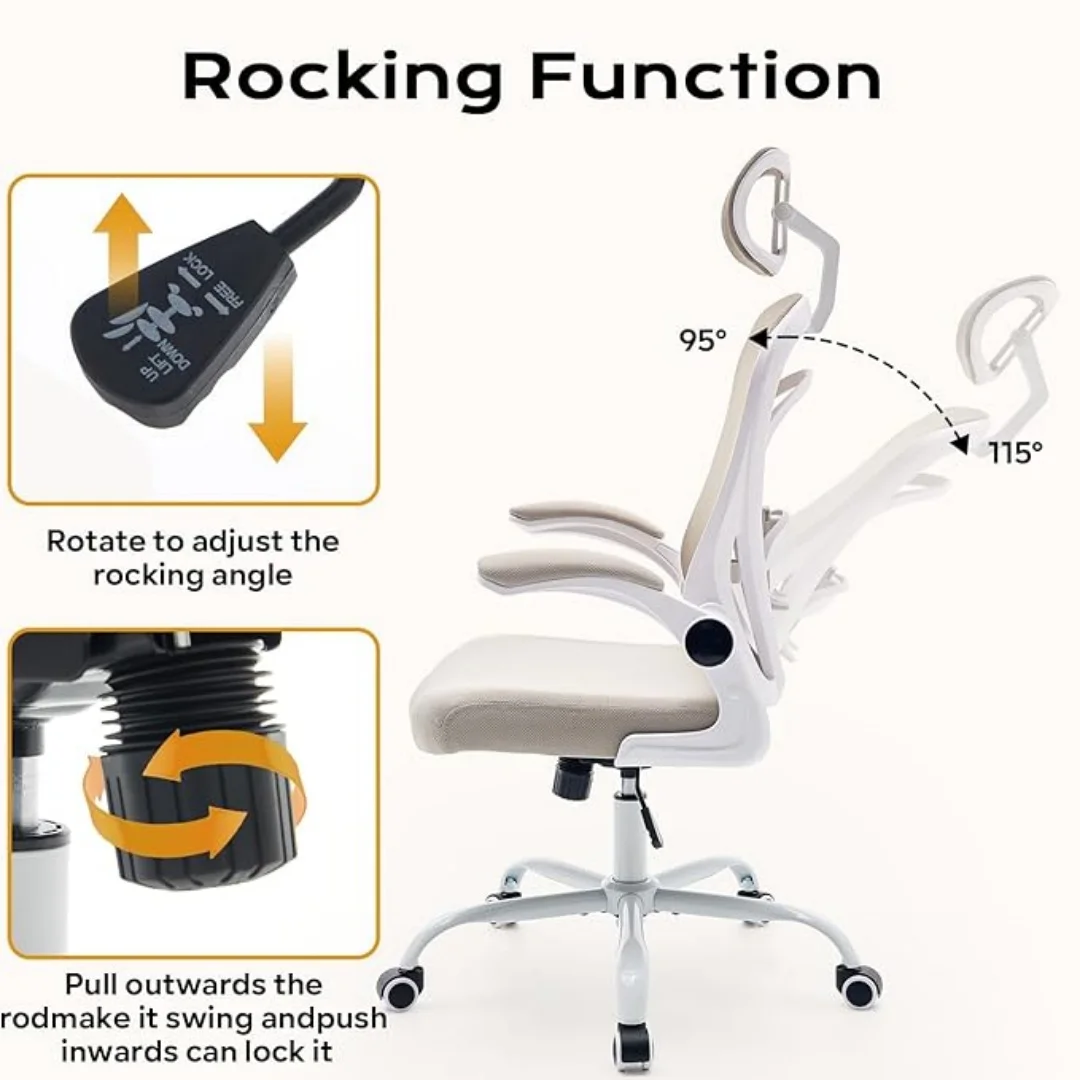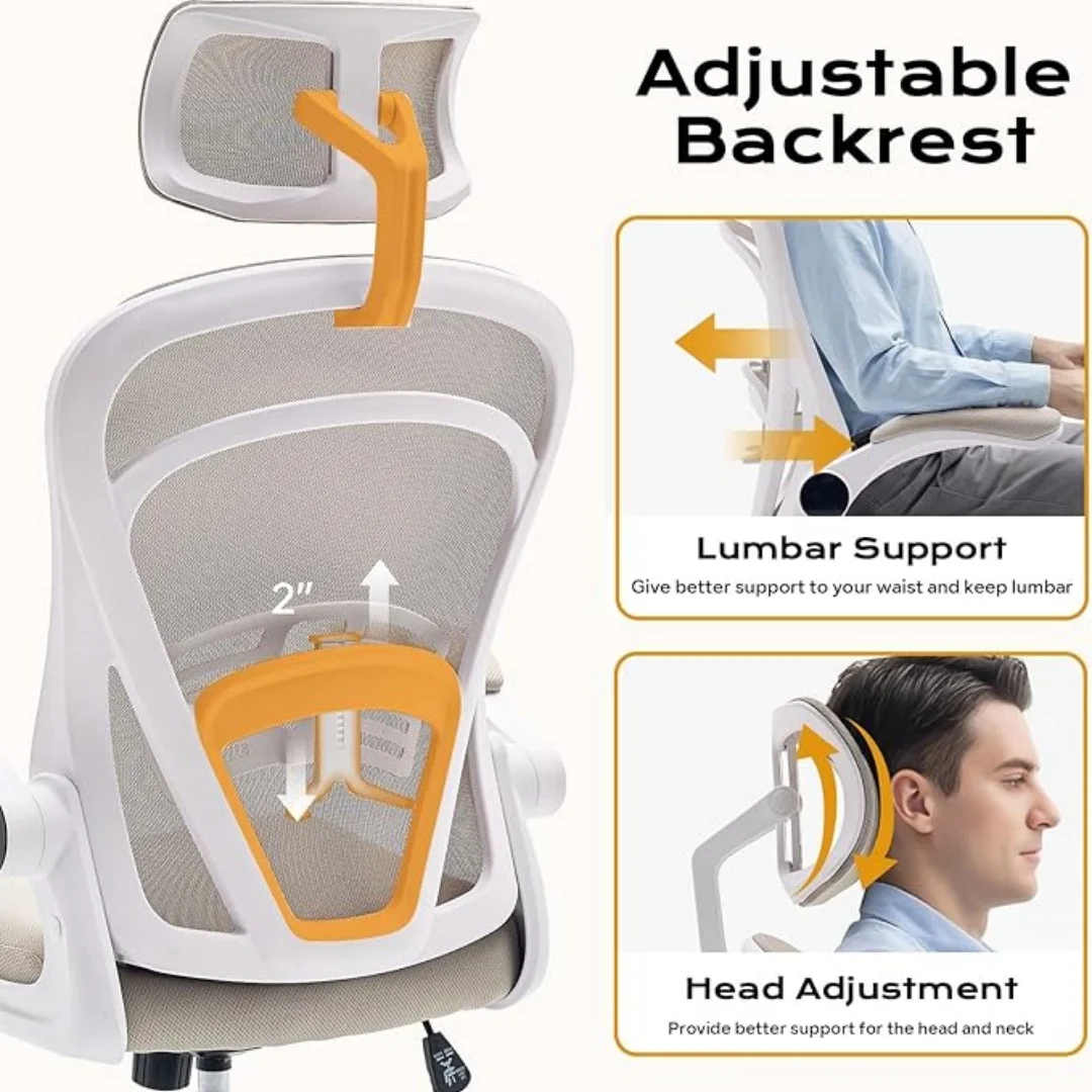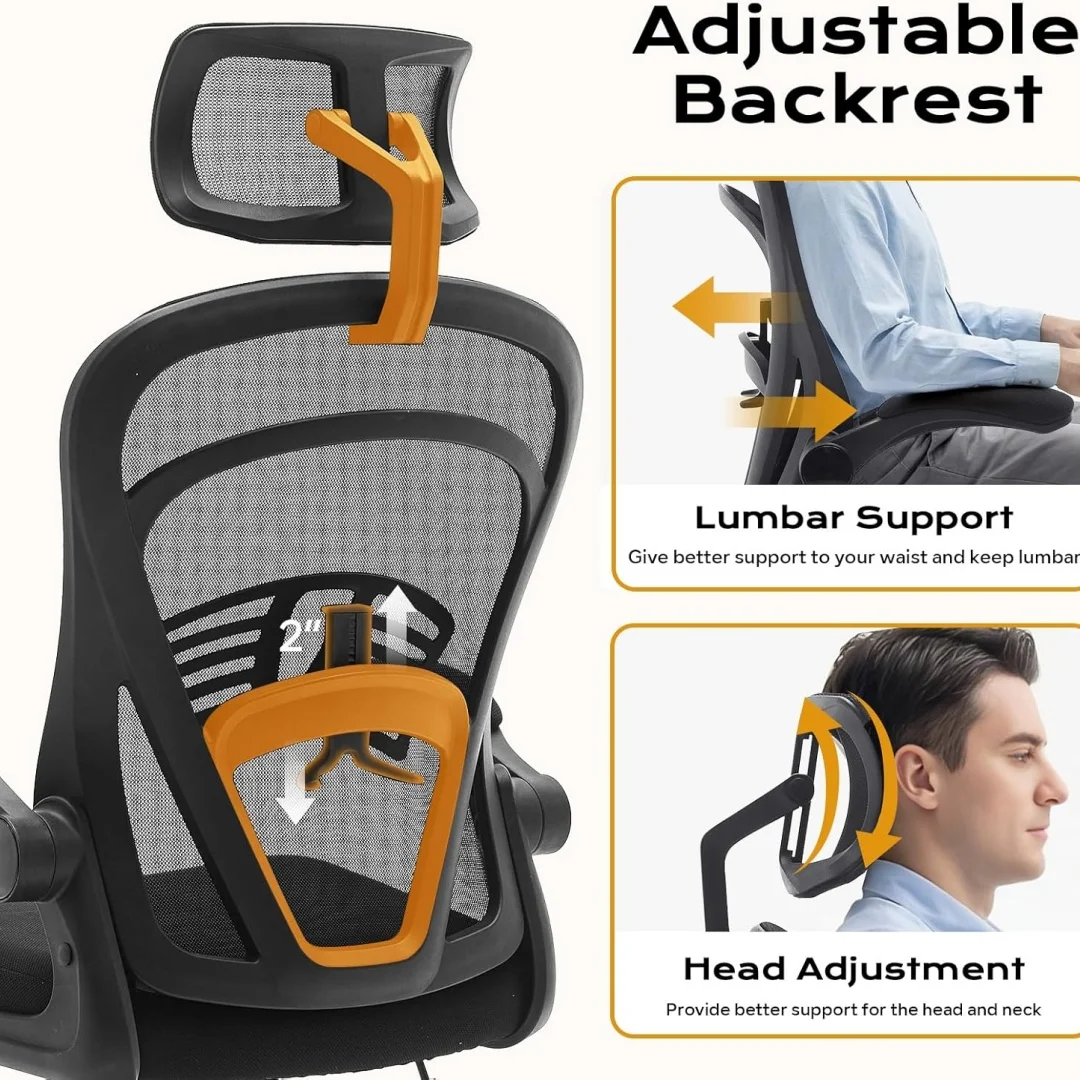 Ergonomischer Bürostuhl, bequemer Computer-Schreibtischstuhl mit hochklappbaren Armlehnen, bequeme Stühle mit Lordosenstütze für das Schlafzimmer