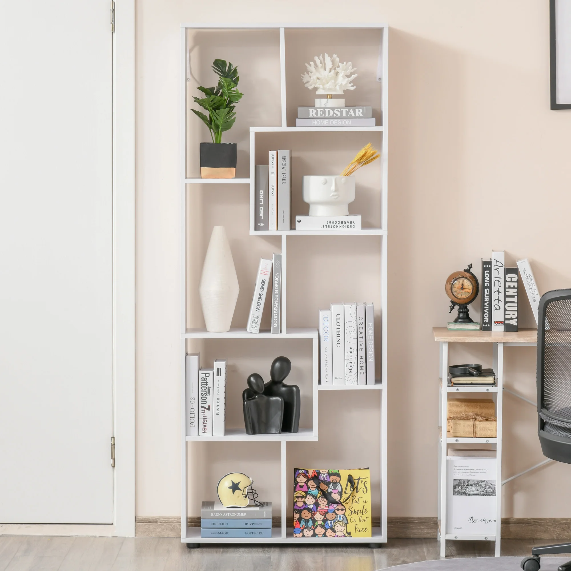 HOMCOM modernes vertikales Bücherregal-Design mit 8 Regalen, E1-Spanplatte, 70 x 24 x 178 cm, Weiß