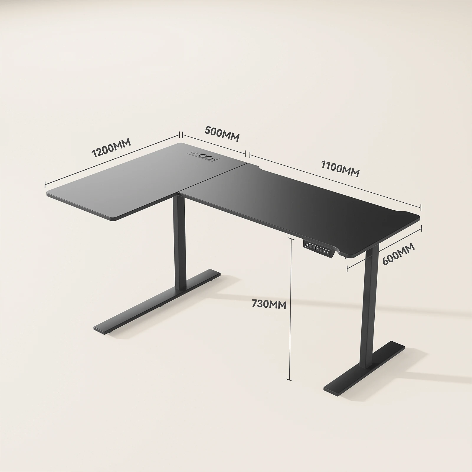 Dieser Schreibtisch verfügt über ein geräumiges L-förmiges Design mit einer großen Schreibtischfläche (1200 mm linker Abschnitt, rechter Abschnitt 1100 mm, Breite 600 mm und einem 500 mm Verbindungsteil).Es bietet ausreichend Platz für mehrere Geräte und Arbeitsutensilien.Mit einer Mindesthöhe von 730 mm kann es an unterschiedliche Höhenanforderungen angepasst werden, sodass es für verschiedene Arbeits- und Lernszenarien geeignet ist.